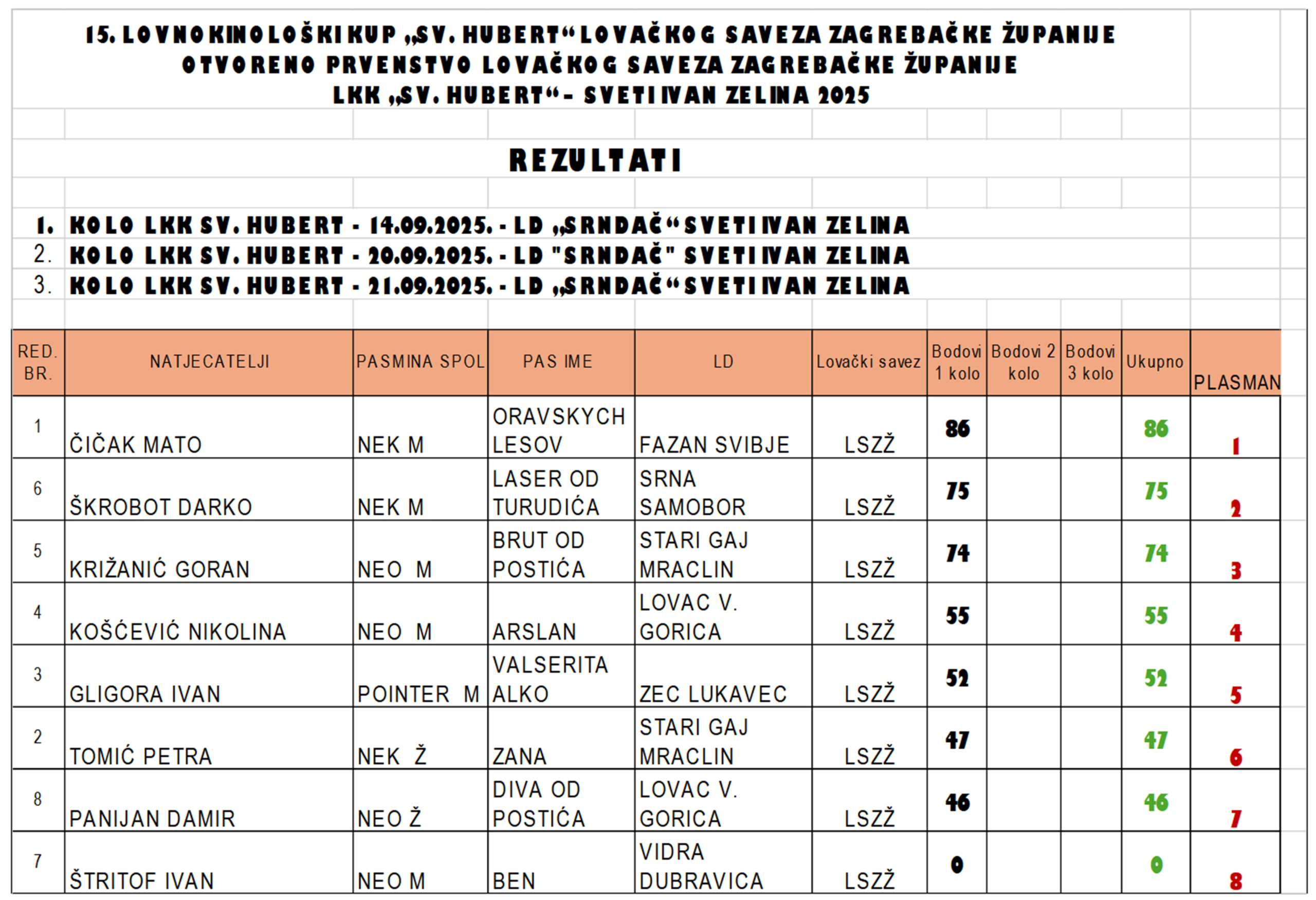 U Svetom Ivanu Zelini 14.09.2025. održan 15. Lovno kinološki kup „Sv. Hubert“ Lovačkog saveza Zagrebačke županije.
